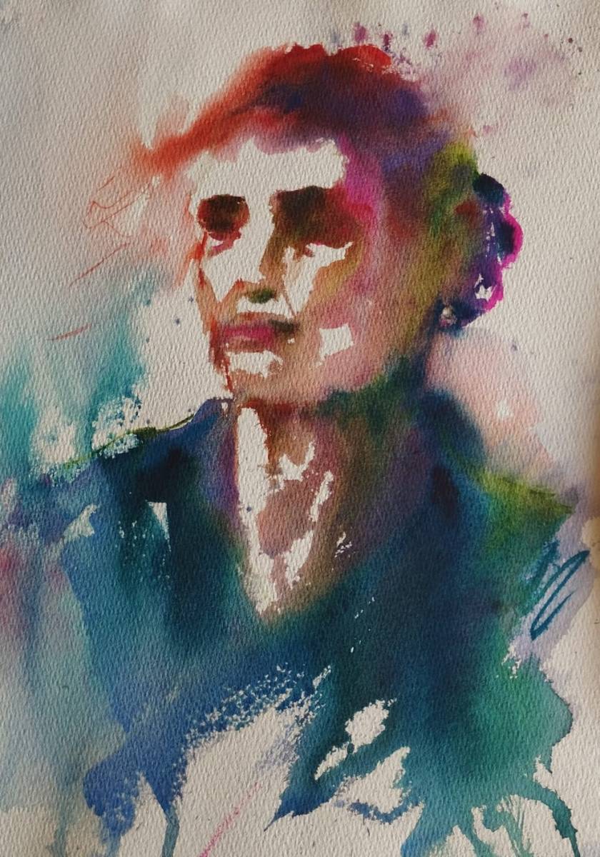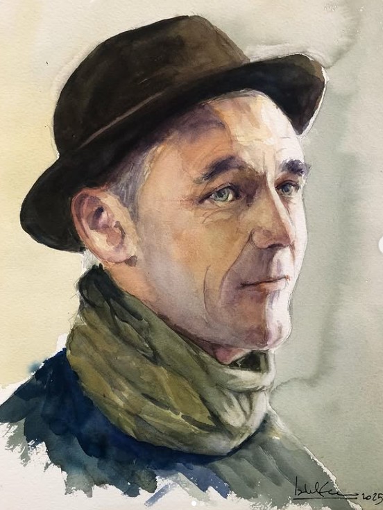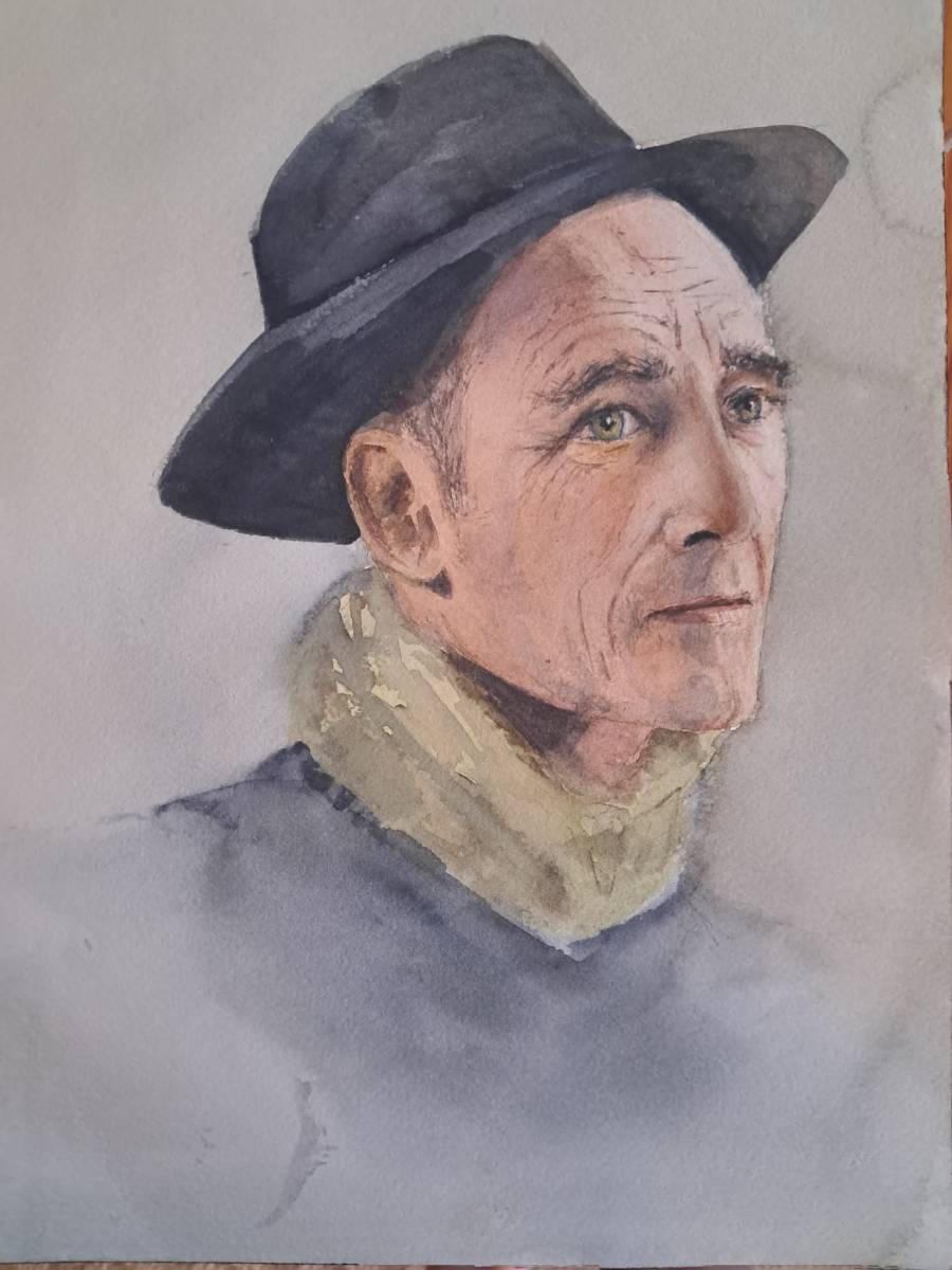 Durante la sesión, se destacaron algunos aspectos fundamentales a tener en cuenta a la hora de afrontar un retrato en acuarela. Uno de los temas más comentados fue la relevancia del dibujo previo, especialmente en lo que respecta a mantener unas proporciones correctas. Se subrayó la necesidad de identificar y ubicar con precisión la característica más distintiva del rostro del modelo —por ejemplo cejas pronunciadas, nariz prominente, etc—, así como prestar especial atención a las proporciones no solo faciales, sino también del cuello y los hombros, que completan el conjunto del retrato.