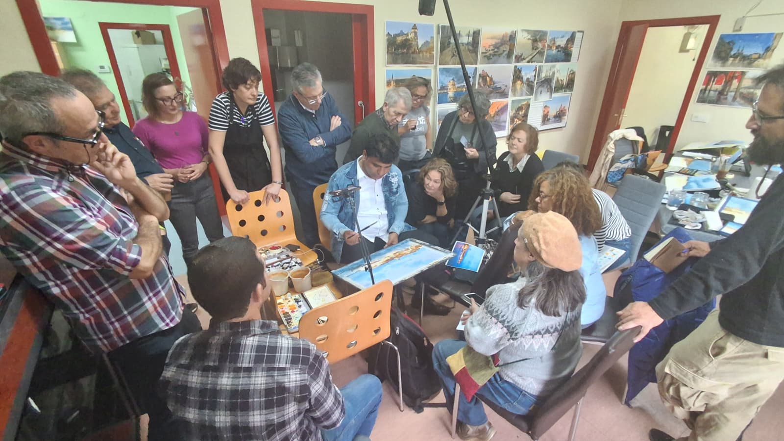 El domingo 7 continuó el taller con otra demostración, esta vez una escena de Malta al atardecer. Prafull nos explicó cómo trabajar la luz, los volúmenes y la atmósfera para lograr un resultado expresivo y equilibrado, y nuevamente cada participante pudo realizar su propia versión.
